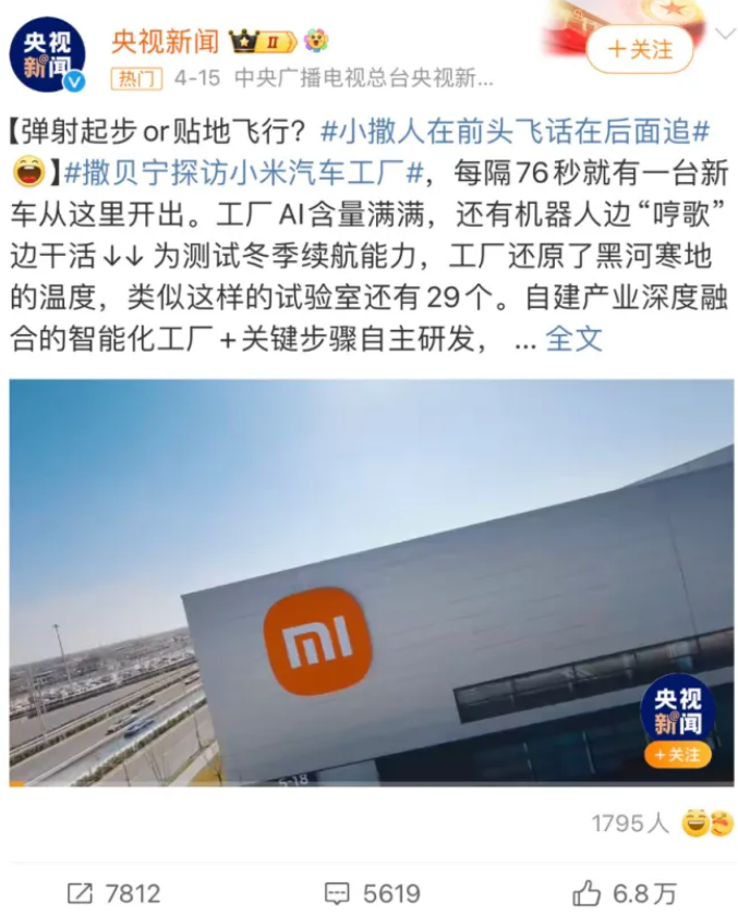 图3 央视新闻探访小米汽车工厂